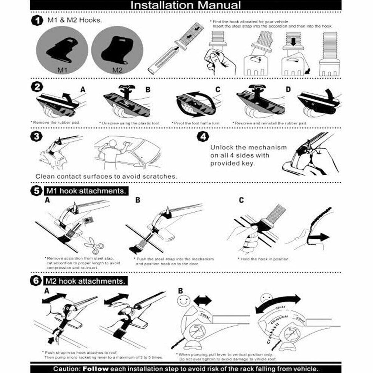 - Suitable for 4-door cars and SUVs with bare roofs (no roof rails)