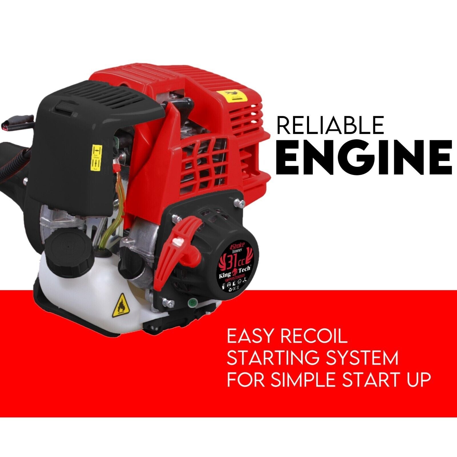 Get expertly landscaped results with the Kingtech 31cc 4 Stroke Cordless Grass Trimmer / Brush Cutter. This tool has the same grade line that professional lawn care crews use on their trimmers, so you’ll be proud of the results.