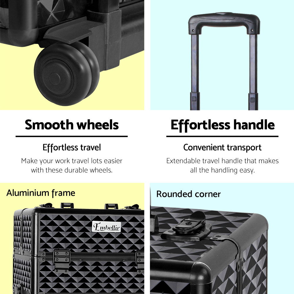 Embellir Makeup Case Beauty Trolley Cosmetic Organiser Box Travel Wheels Diamond