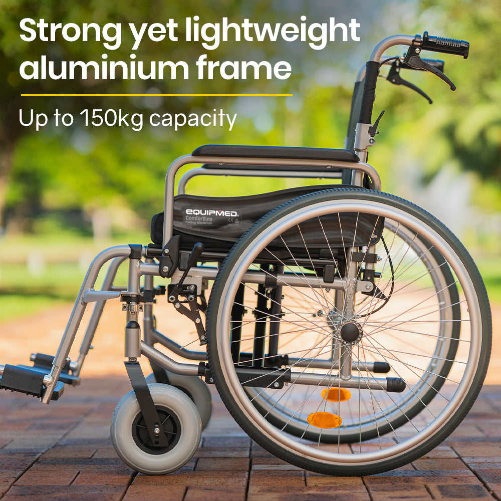 - 1 x Equipmed Comfortline Aluminium Wheelchair