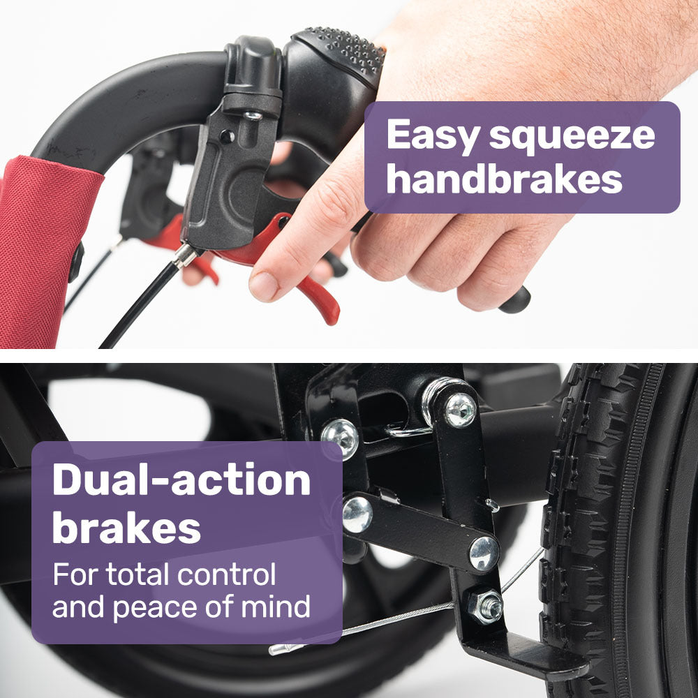 - Easy-squeeze dual action hand brakes with park function