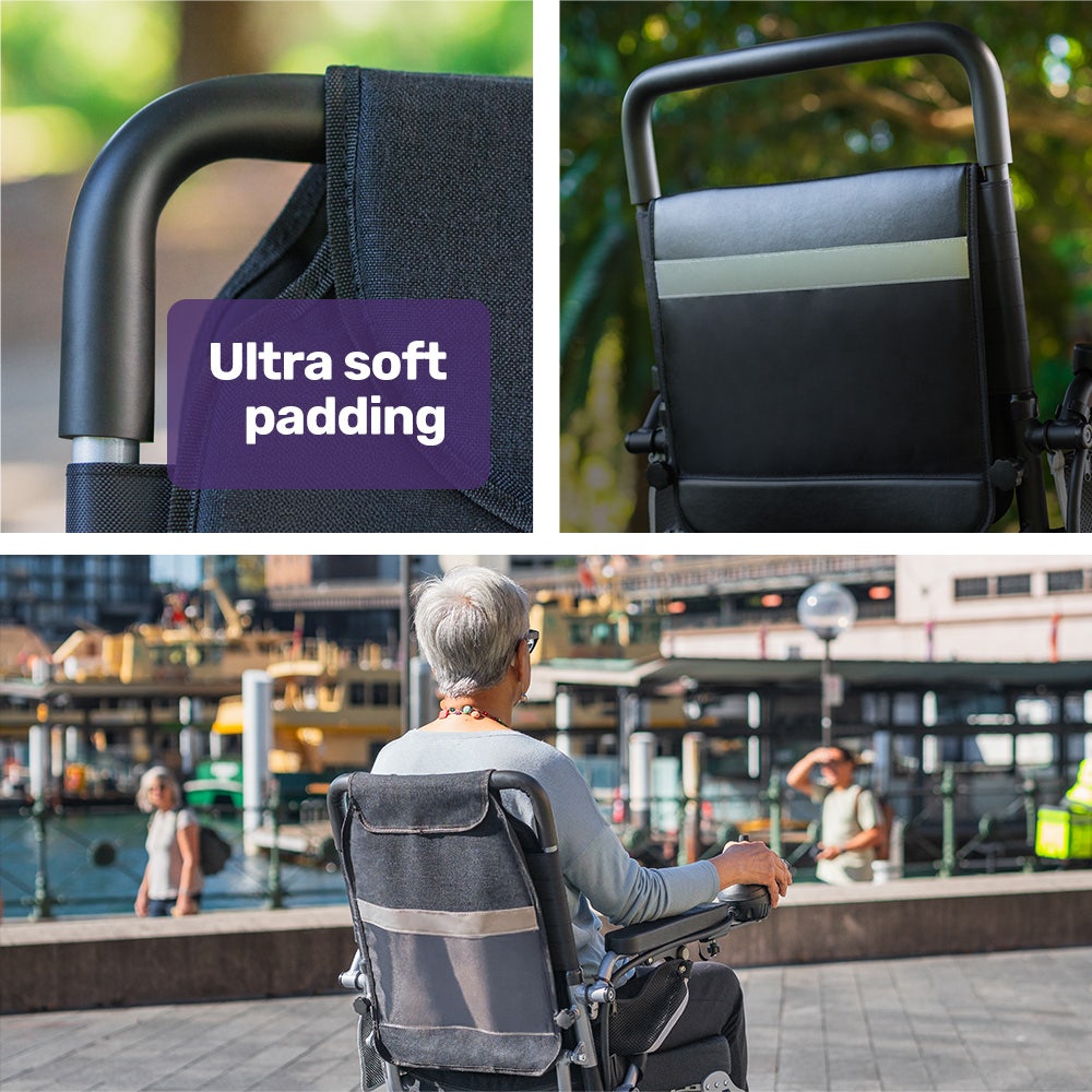 Twin motors offering a total of 500 watts offer an enjoyable riding experience with smooth and responsive performance, not to mention the ability to climb hills and ramps right up to a 15-degree incline! A tight 1m turning circle offers the manoeuvrability you need on paths and in places like shopping centres and airports.