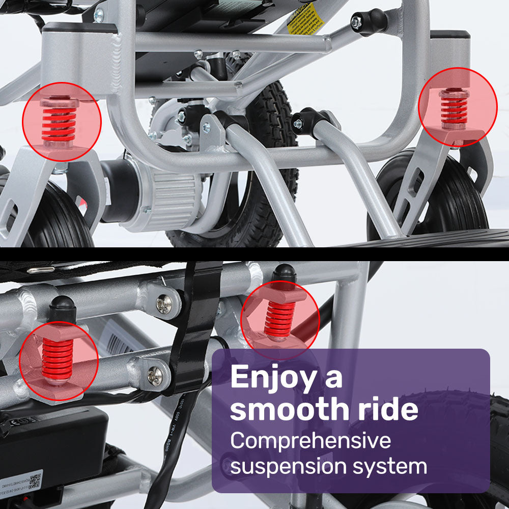 EQUIPMED Ultra-Light Power Wheelchair, Tight Turning, Airline Approved, Folding, ARTG Certified, Aluminium Frame, Lithium Battery, Grey