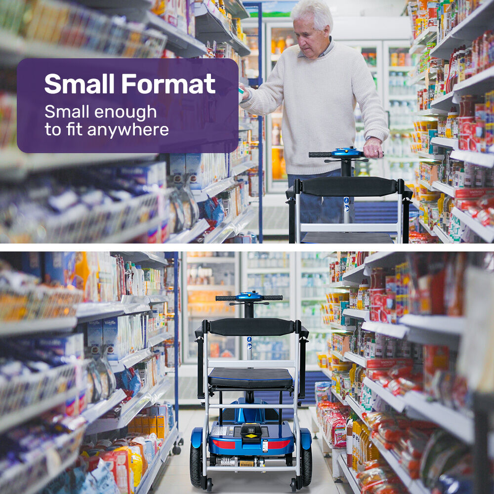 EQUIPMED Ultra-Lightweight Folding Electric Mobility Scooter, 19kg with Battery Removed, 120kg Capacity, Long Range, Brushless Motor, Portable, Blue