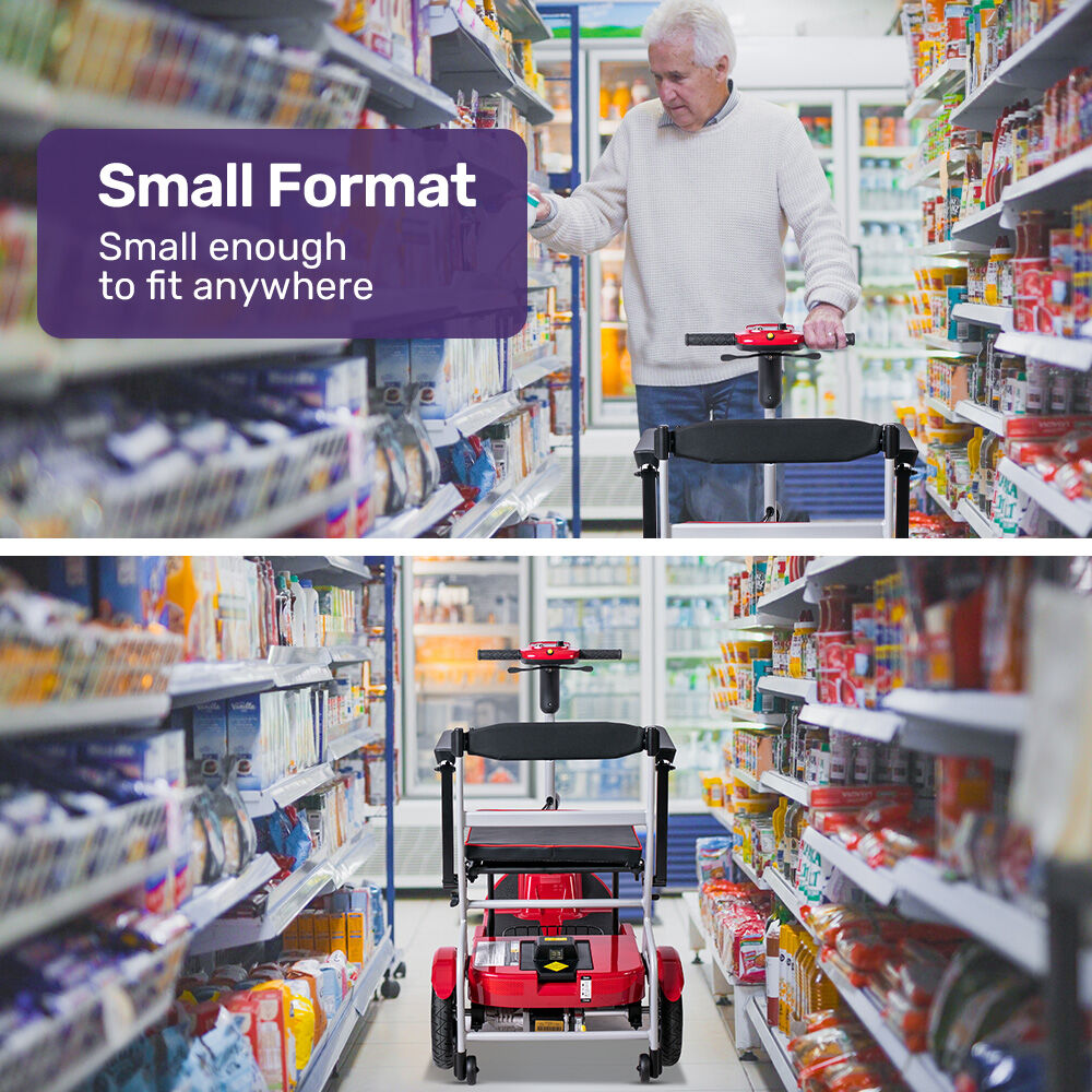 The Equipmed PacerLite Lightweight Mobility Scooter is built for effortless mobility. Weighing just 19kg (without the battery), its the lightest mobility scooter on the market. Folding in under 30 seconds, it fits easily into a car boot, under a table, or in a cupboard. The removable battery makes handling and charging even simpler.