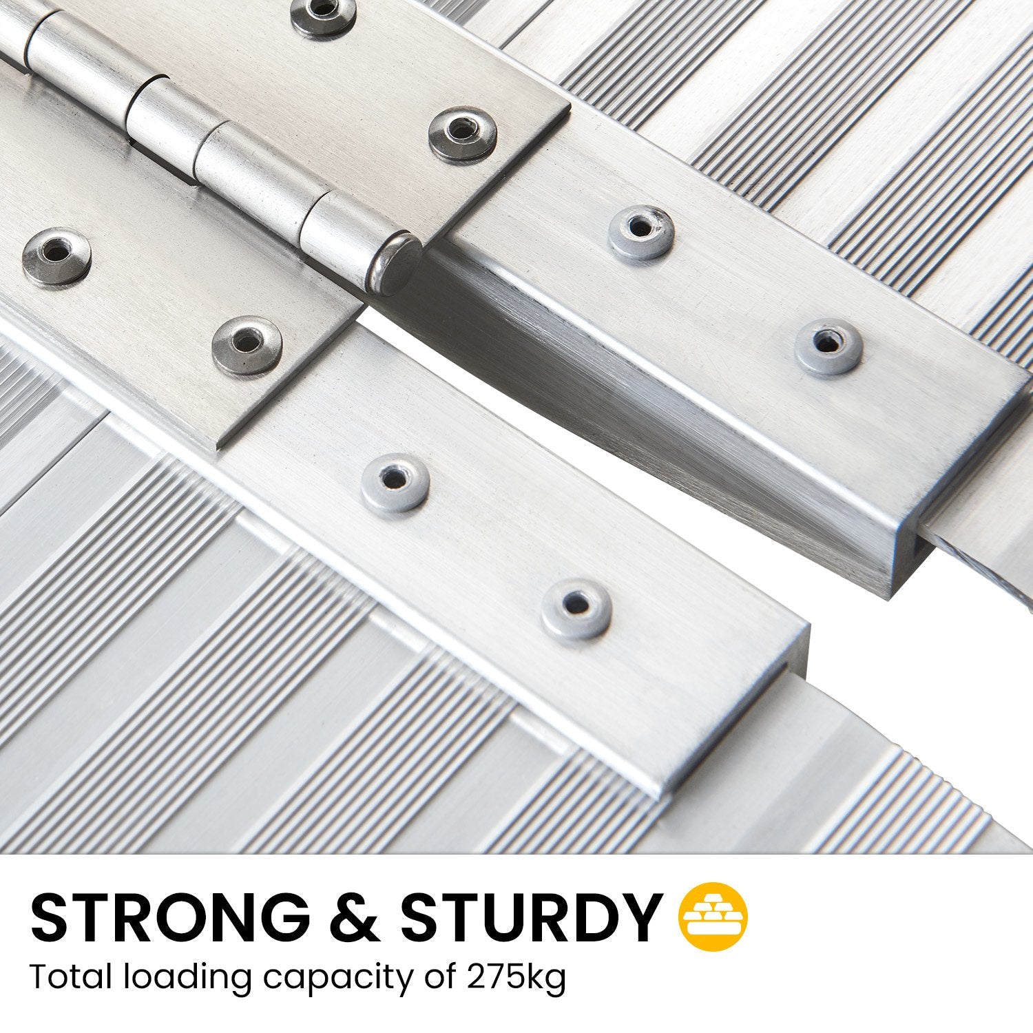 With its high-strength aluminium construction, this ramp can accommodate up to 275kg. The non-slip surface and guardrails ensure your peace of mind and safety.