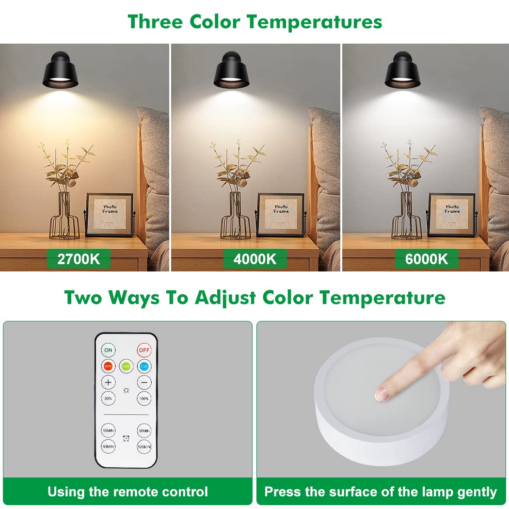 Night Light Wireless Wall Light Indoor LED 2 Pack,Battery Operated Wall Lights Rechargeable Lamp with Remote,Touch Lamp Dimmable Wall Sconces Bedside Lamp for Bedroom Livingroom (Black, 2Pack) [Energy Class E]