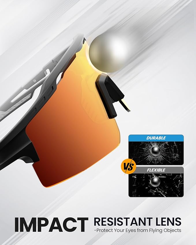 - HD Visual Experience: Enjoy a crystal-clear view with impact-resistant HD lenses in our cycling glasses. Reduce visual fatigue caused by distortion, while providing excellent resistance to high-speed impacts and unexpected conditions