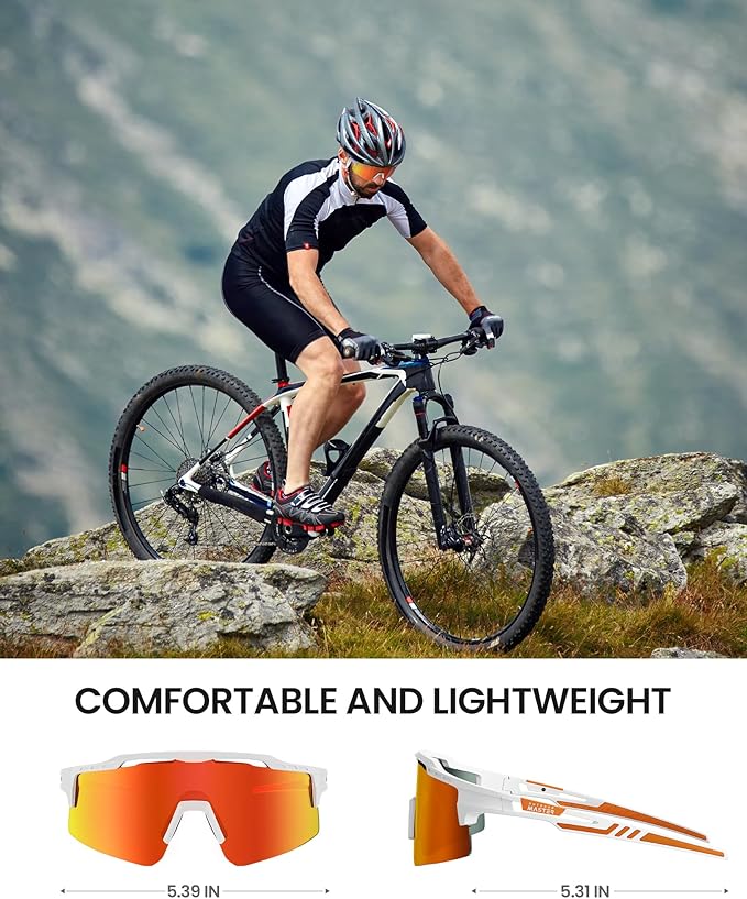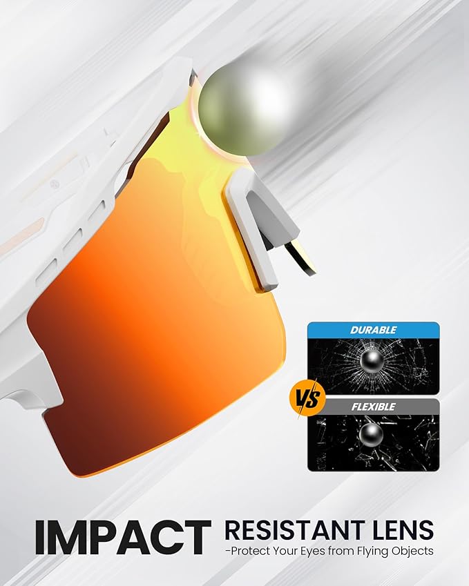 OutdoorMaster Hawk II Polarized Sports Sunglasses for Men Women, TAC 100% UV400 Protection TR90 Frame Cycling Sunglasses, Baseball Running Fishing Golf Glasses-White Frame+revo Red Cat.3,Adult