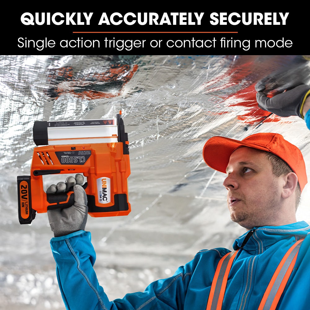 UNIMAC CLS500 15-50mm 18ga 2-in-1 Stapler/Brad Nail Gun, Cordless 20V Lithium Nailer