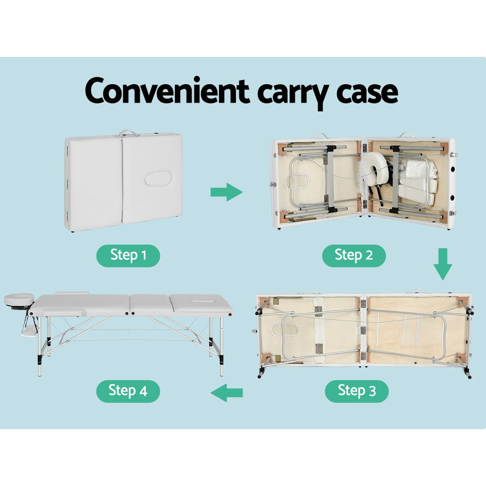 Zenses Massage Table 65cm Portable 3 Fold Aluminium Beauty Bed White